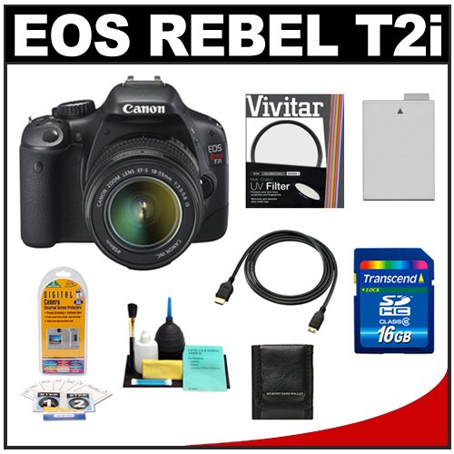 | Canon EOS Rebel T2i Digital SLR Camera & 18-55mm IS Lens + 16GB Card + Battery + UV Filter + Accessory Kit |